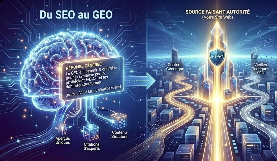 Le monde du marketing digital et du référencement naturel traverse actuellement sa mutation la plus sismique depuis l’invention de l’algorithme PageRank par Google à la fin des années 90. Pendant deux décennies, les règles du jeu étaient relativement claires, bien que changeantes : il s’agissait de séduire des robots d’indexation via des mots-clés et des backlinks pour apparaître dans une liste de dix liens bleus. Aujourd’hui, cette époque révolue laisse place à une nouvelle ère, celle de l’assistance conversationnelle, de la recherche « Zéro-Clic » et de la réponse synthétisée. Dans ce contexte technologique en ébullition, une nouvelle discipline s’impose désormais comme la norme incontournable pour toute entreprise soucieuse de sa pérennité numérique, à savoir le Generative Engine Optimization, ou GEO.